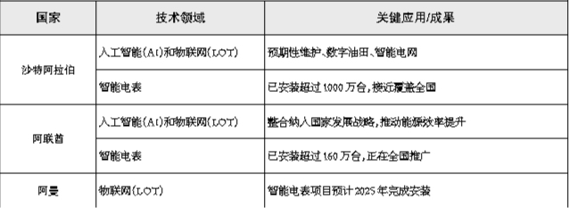 中东地区部分国家能源数字化技术应用情况(2025年)