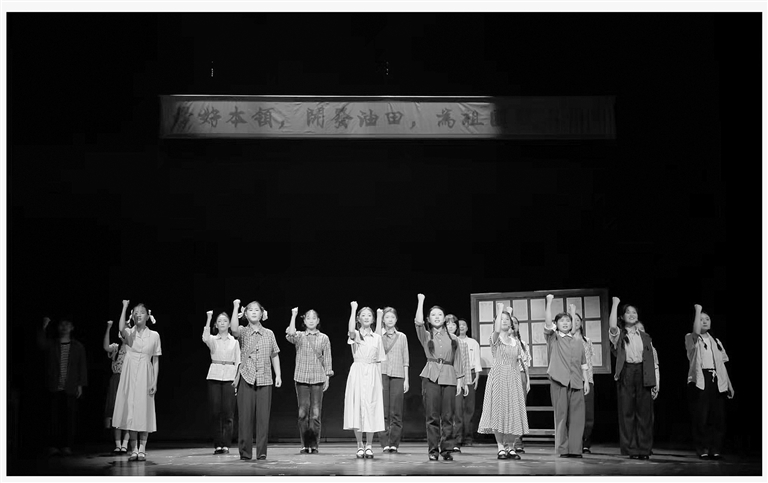 历史的洪流需要生产实践去承载。音乐剧《我为祖国找石油》深刻揭示了国家的战略如何具体化为一代人的青春抉择。西北石油工业学校(今西安石油大学)的创立,正是为国家石油工业打造的“人才摇篮”。而远在江南的温州师范学校的学子们,在“祖国号召高于一切”的感召下,毅然决然弃笔从“工”,奔赴大西北。舞台上,那离别故土的眷恋、刻苦钻研的汗水、初至戈壁的震撼,尤其是那场毕业典礼上撼人心魄的集体宣誓:“我保证一定要无条件服从组织分配……永远站在国家社会主义工业化的最前列,愿意为祖国的石油事业贡献一切!”这誓言,是一代青年向祖国的庄严承诺,昭示了新中国石油工业最纯粹、最滚烫的初心。